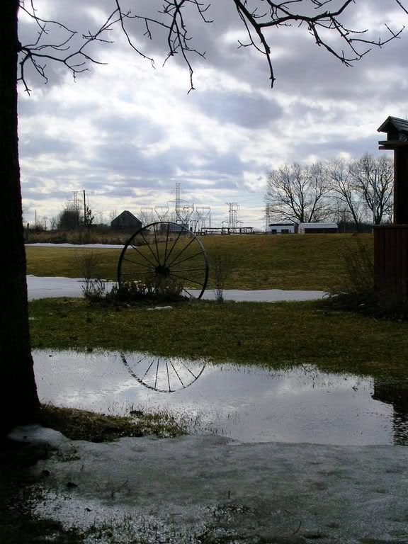 This morning I left the house around 5:45, as the sky was turning a whiter shade of pink,so I wanted to get a few more pictures of the rapidly thinning ice on the big lake. This picture was taken in the small park across to the entrance to Millhaven Pen.