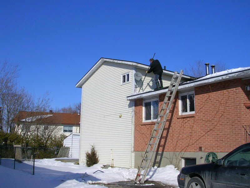 And here is a picture of my husband shovelling off our roof on Saturday.