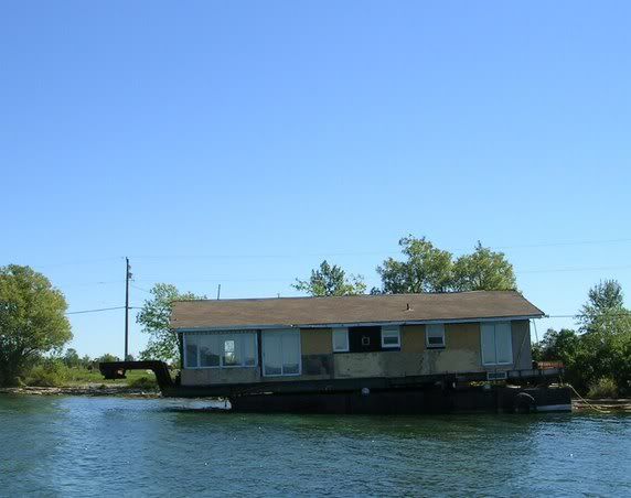 Its not everyday that you see a house on a barge, resting on the shoreline. Apparently this structure was floated over to the island via finkle shore park a few days ago. From this point, they need to transport the house a few miles east. I guess that's one way to move a house:)