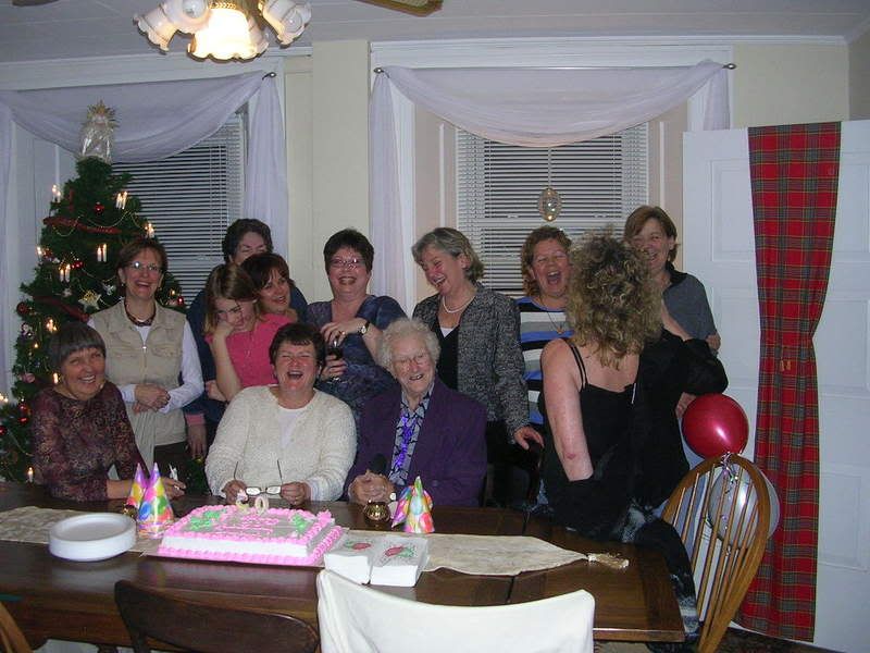Let's see...we went back to our friends Cheryl and Kenny's place for a surprise 50th birthday party for Cheryl. Here is a picture of all the crazy ladies in the house: