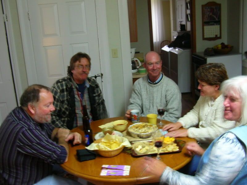 Yesterday, we picked up Harly and Judy and traveled to Brockville to spend the day at our friends Cheri & Kenny's house. They are fortunate to live in a beautiful 150 year old Limestone farmhouse that sits on a 100 acre original plot. This home has been in Cheri's family for many years and she has a lot of documents and memorabilia to do with the history of the property. It rained all day so we basically stayed inside. We spent the entire day eating, chatting and enjoying each others company. This picture was taken as we enjoyed our first table full of snacks: