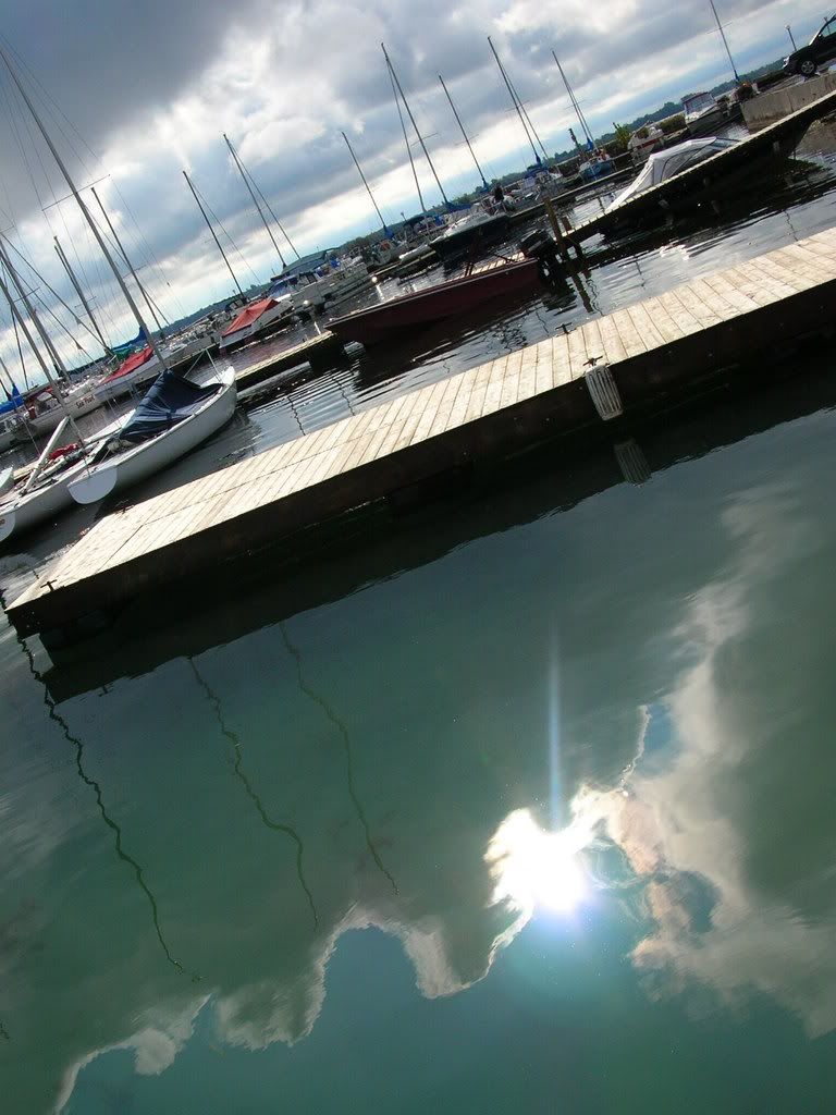 On Sunday, we went to the Legion for breakfast, ran into Mike, Louise and Andrew there and were fed quite well! Then we went down to the marina to see if the boat ramp was free for us to take out boat out for the season:( Of course I had to take a few pictures of this event. It was a calm day but the sun played some funny tricks with the camera. This one looked like a rocket had blasted off: