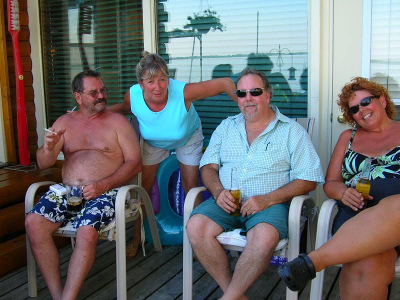 On the way home, we stopped in at John and Sues place. Their neighbour was there and decided to play photographer. So here is a picture of the four of us: