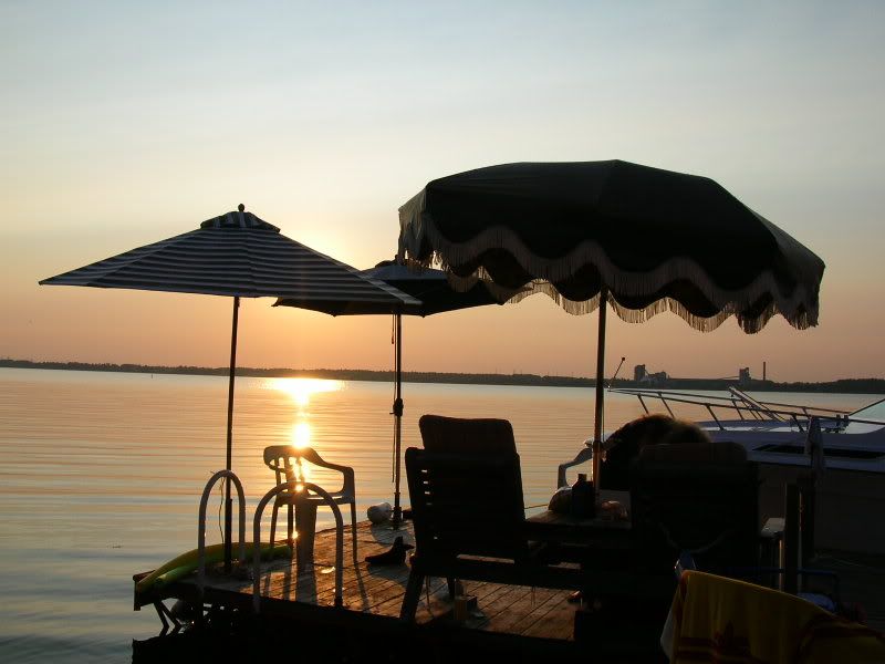 The next day I dragged my butt out of bed at 9 and we were on the water by 11am in the boat. It started off as a beautiful sunny day as we slipped over to the back beach. Billy washed the bottom of the boat and I swam around him in circles. The water was actually refreshing and I didn't want to leave. We went across the gap and took our time viewing the beautiful shoreline of Prince Edward County. We stopped for lunch and a quick drink and then took off again for a short time till the black clouds formed overhead and we were chased down the lake by a looming thunderstorm.